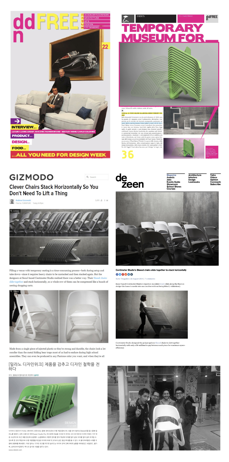 그리고 해외 박람회, 매거진 및 여러 매체에서 '슬리드 체어'의 독창적이고 영리한 디자인에 주목했습니다.