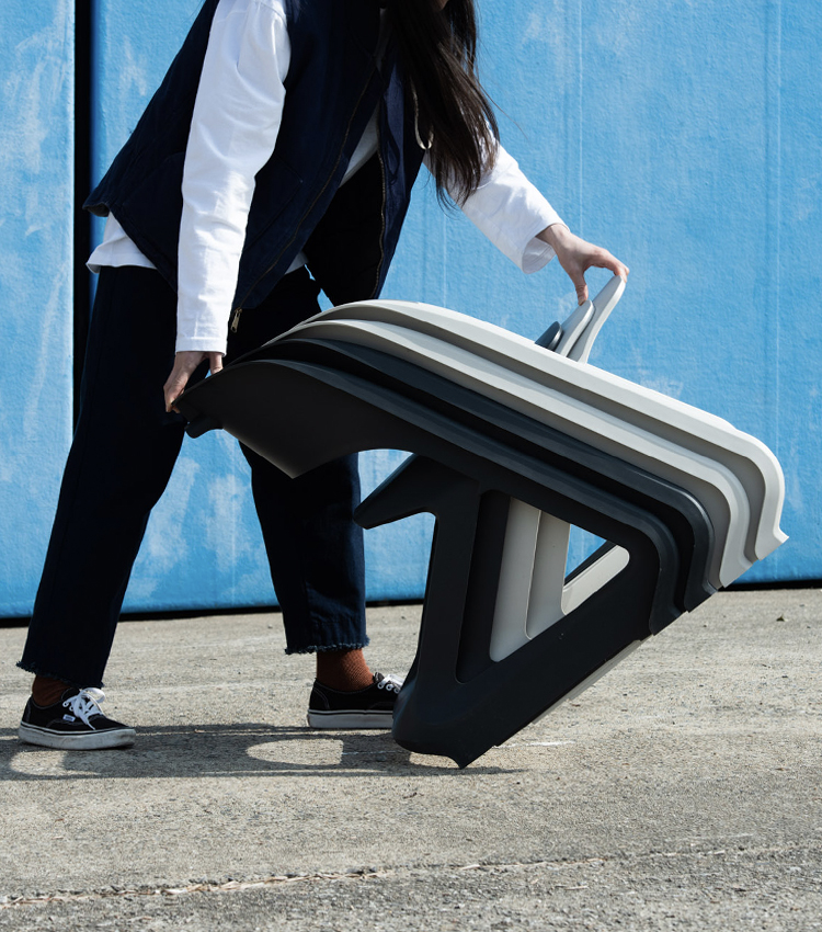'슬리드 체어'의 네스팅 구조는 공간을 절약하고